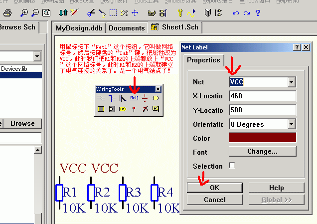 protel在线教程:利用添加好的零件库,画第一个可以自动布线的原理图