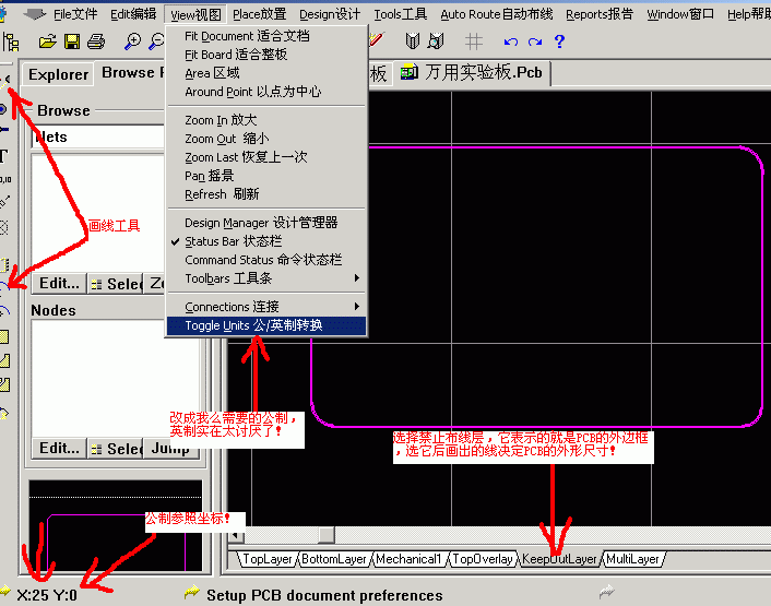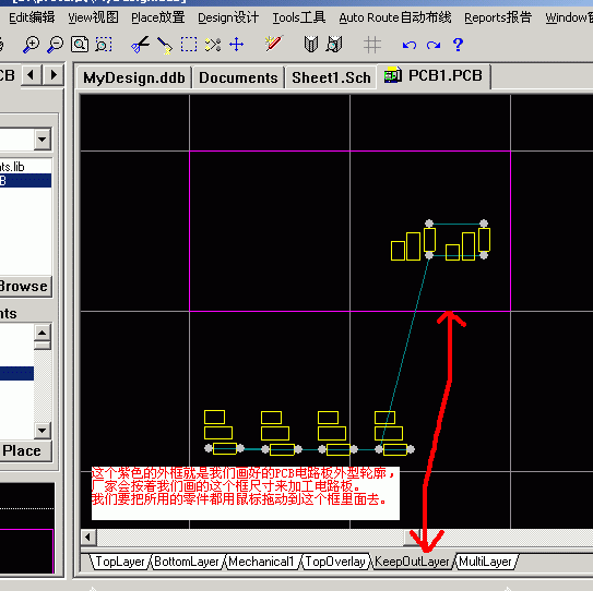 8.做一个自己要的外型框,然后把PCB零件封装移动到里面去