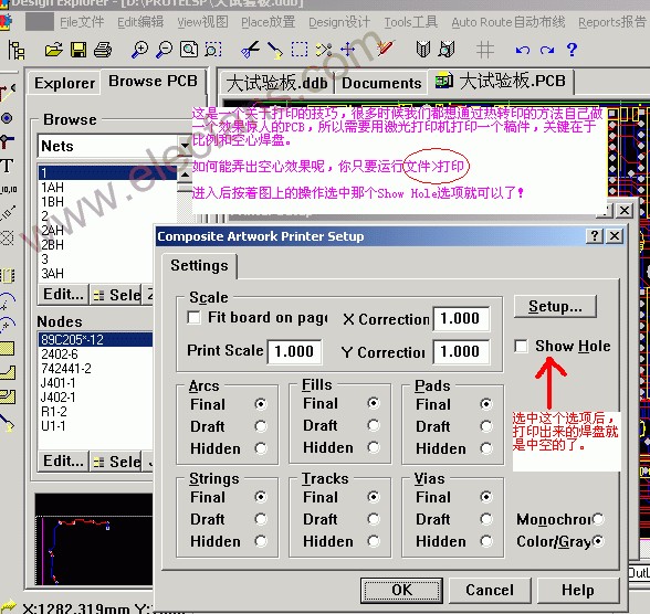 Protel在线教程:在PCB中如何打印出中空的焊盘
