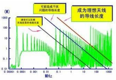 很明显,在常用的频段内,即使很短的导体也能产生发射和抗扰度问题。可以看到,在100MHz 处,1 米长的导体就是很有效的天线,在1GHz 处,100mm 的导体就成为很好的天线。这个简单的事实就是使EMC 被称为“黑色艺术”的主要原因。