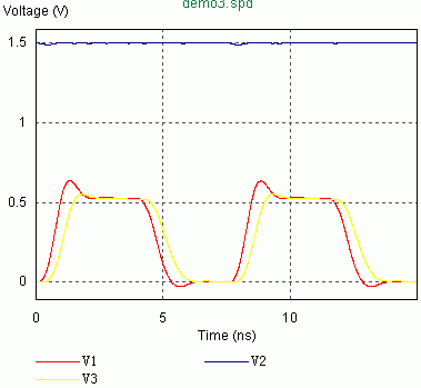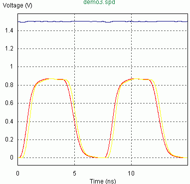 在同样条件下,负载阻抗改为50欧(过阻尼),仿真波形是(第二个图):