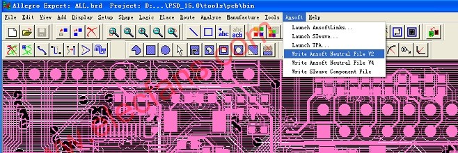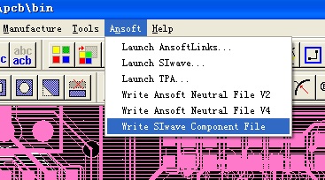 运行allegro的AnsoftWrite Ansoft Neutral File V2菜单可以生成anf文件。
