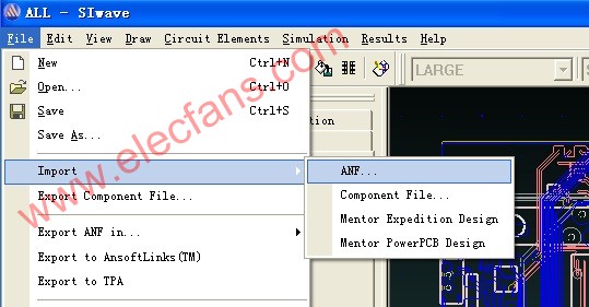 运行SIwave 3.0,通过菜单File Import ANF…可以将anf文件导入到SIwave