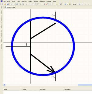 3. 在shclib 编辑界面,选择Place 菜单下工具绘制一个元件符号,如图3,添加一个NPN 晶体管。