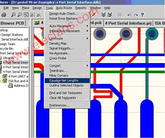 tools/equalize net lengths这个命令就是在protel中手动布等长线的工具,