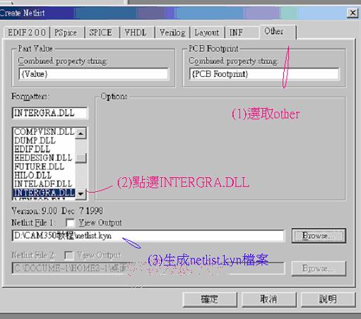 网络表,选取DSN后,选择Tools→Create Netlist→点选Other→选择intergra.dll格式