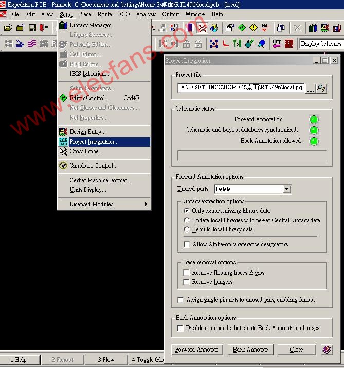 or并离开,Expedition会直接进入案件编译(或是执行setup→Project Integration→Forward Annotation),一般最常见的错误是cell pin number没有match,或是笔误(例如0与O填错),只要Forward Annotation.txt显示没有任何错误,恭喜你,你已经学会如何使用