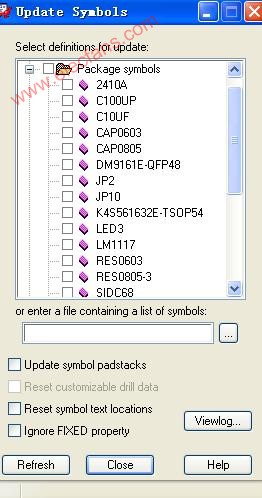这里可以在package symbols目录下列出了你制作的个人封装,找到你已经修改的封装元件打上勾,然后点击Refresh按钮就可以更换封装了。