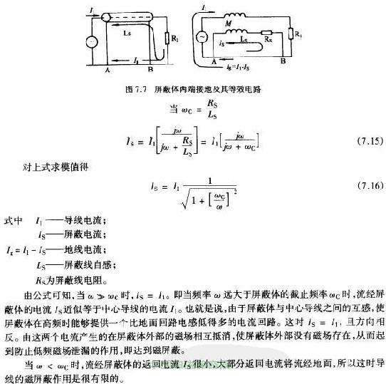导线的屏蔽层对隔离线间干扰有很重要的作用,但是它的隔离作用在不同频段其作用机理是不相同的,其中低频段具有电屏蔽性能和磁屏蔽性能,并且屏蔽层和其他地线构成地回路;在高频段,屏蔽层有抗电磁辐射作用等。本节主要阐述屏蔽层的磁屏蔽作用及所形成地回路引入了地回路干扰,屏蔽层的电磁屏蔽作用也进行一定分析。7.2.1 屏蔽层的磁屏蔽