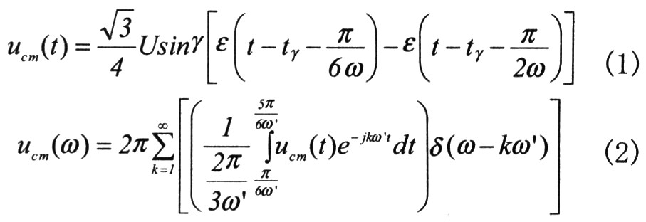 如果三相电源对称的情况下,中频发电机产生共模干扰电压的时域、频域表达式为[2]: