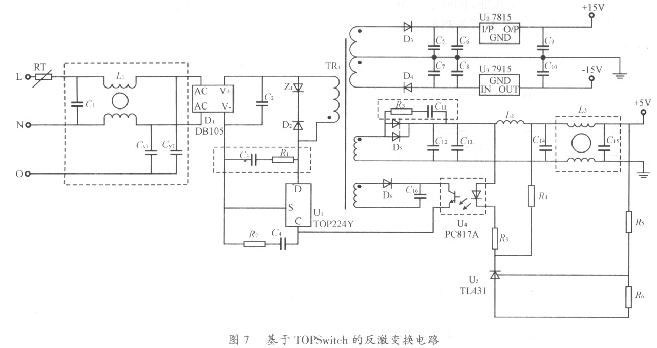 TOPSwitch单片电源应用频率一般在20kHz以上,这样对前级电路(通常是电网)带来很大的电磁干扰问题,危及其他电气设备的正常运行;而且其本身产生的干扰直接危害到电子设备的正常工作。为此必须对电路进行电磁兼容(EMC)设计,使电磁干扰问题限制在允许的范围内。