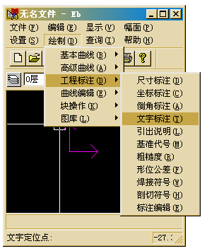 <1>启动CAXA 98软件 选择 绘制->工程标注->文字标注 [如图1]