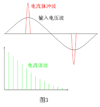 这种脉冲尖峰电流如用付立叶级数展开,将被看成由非常多的高次谐波电流组成,这些谐波电流将会降低电源设备的使用效率,即功率因数很低,并会倒灌到电网,对电网产生污染,严重时还会引起电网频率的波动,即交流电源闪烁。脉冲电流谐波和交流电源闪烁测试标准为:IEC61000-3-2及IEC61000-3-3。一般测试脉冲电流谐波的上限是40 次谐波频率。