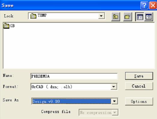 6.选择菜单 File-Save As,输出格式选 ORCAD 9.10。