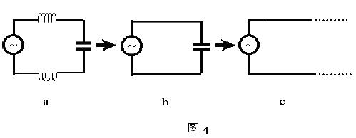 对于集中参数电路,随着工作频率的提高,电路中的电感量和电容量都将相应减少,如图4所示的振荡回路。