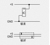长的信号线也可成为接收ESD脉冲能量的天线,尽量使用较短信号线可以降低信号线作为接收ESD电磁场天线的效率。