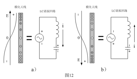 天线来回极化的工作原理可以等效成一个串联谐振电路,当天线在电场力的作用下被极化带电时,它又相当于一个电容在充电;当天线中的载流子在电场力的作用下来回移动时,它又相当于一个电感,并且在天线的周围会产生磁场。