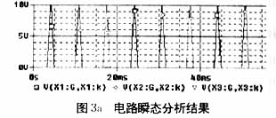 按上述参数设定脉冲源Vp1,Vp2,Vp3并对电路进行瞬态分析结果如图5所示。