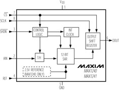 MAX1241需要一个外部参考电压,参考电压输入范围一般为0~2.5V,MAX1241能接收的电压范围为0~2.5V,输入电压过大会烧掉芯片,一般不应超过3V。