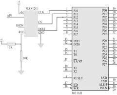当把MAX1241的模式控制端SHDN置低时,芯片处于关闭模式或称休眠模式,此时工作电流低于15μA,置高后,它能在4μs内从休眠状态转到工作状态。如不使用,可以接高电平或悬空。