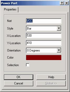 VCC电源元件与GND接地元件有别于一般的电气元件。它们必须通过菜单Place/Power Port或电路图绘制工具栏上的按钮不调用,这编辑窗口中会有一个随鼠标指针移动的电源符号,按Tab键,即出现如图1-12所示的Power Port对话框。