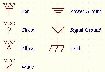 在对话框中可以编辑电源属性,在Net栏中修改电源符号的网络名称,在Style栏中修改电源类型,Orientation修改电源符号放置的角度。电源与接地符号在Style下拉列表中有多种类型可供选择,所下图1-13所示。