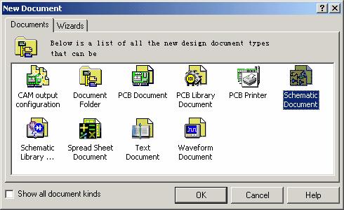 (3)选取File/New...打开New Document对话框,如图1-6,选取Schematic Document建立一个新的原理图文档。