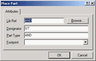 做法是通过菜单命令Place/Part或直接点击电路绘制工具栏上的按钮,打开如图1-8所示的“Place Part”对话框,然后在该对话框中输入元件的名称及属性,如图1-8所示。