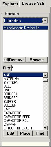 添加元件的另外一种方法是直接从元件列表中选取,该操作必须通过设计库管理器窗口左边的元件库面板来进行。