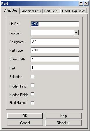 改变元件的属性,也可以通过菜单命令Edit/Change。该命令可将编辑状态切换到对象属性编辑模式,此时只需将鼠标指针指向该,然后闽南鼠标左键,就可打开Part对话框。