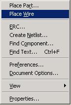 更快捷的连线方法:在待命模式,按鼠标右键,出现如图1-14所示的右键菜单,点击Place Wire菜单项就可以进行连线。