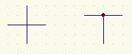 在某些情况下Schematic会自动在连线上加上接点(Junction)。但通常有许多接点要我们自己动手才可以加上的。如默认情况下十字交叉的连线是不会自动加上接点的。如图1-15所示。