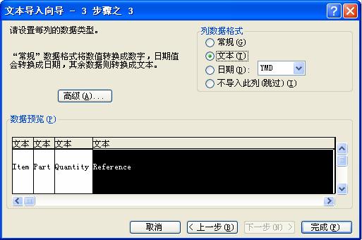 Header= 项目 物料编号 元件名称 规格 位置 用量 单位 总用量 实发数 差异数 备注