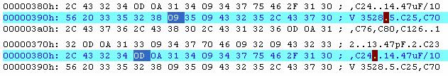 注意EXCEL 处理时,图中的09 和 0D 0A 的作用。