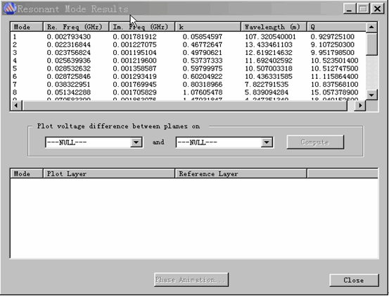 选择菜单“Simulation\Computer Resonant Modes…”弹出以下窗口: