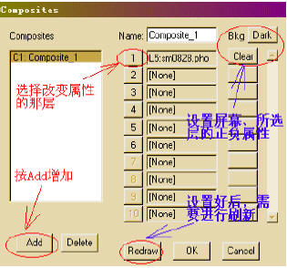 3.按Add增加一个Composites Name,选择改变属性的层,设置屏幕背影的极性。