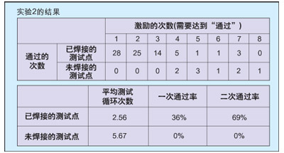 表2:结论是当使用焊接测试点时,ICT性能大大提高。考虑到夹具和工艺的一些问题,用户相信一旦处理好这些问题,他们能获得的一次通过良率在80~90%之间。
