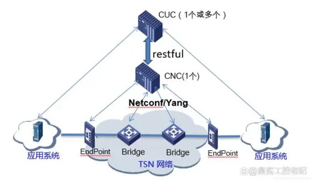 在TSN网络中定义三种基本类型的流量:计划流量ST、尽力而为流量(BE)和预留流量RT,对硬实时性有严格要求的数据传输采用ST,而对实时性要求不高并且需要预留部分带宽的数据传输采用RT,BE则是没有任何传输要求的一般以太网流量。 网络拓扑设计 一旦流量特征分析完成并确定了测试计划,就有必要设计并设置一个网络拓扑结构,TSN网络定义TSN包括以下几个方面: a)要使用的设备:TSN终端设备和交换机/桥接器(endpoint , bridge)。 b)确定这些设备之间的物理连接,这和网络本身的拓扑结构设计相对应。 c)在构建的网络中定义TSN数据流,以及这些数据流的实际传输路由。 根据测试需求,设置TSN交换机的参数,如时间同步方式、队列调度算法、流量控制策略等。将TSN终端设备连接到TSN交换机,确保设备与交换机之间的连接正常。