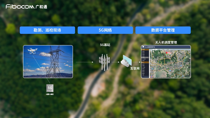 巡检无人机可与高清相机、红外相机、夜视相机、激光雷达等多种传感器进行组合,传感器通过搭载5G模组将巡检视频通过上行链路传输到服务器,工作人员再通过平台进行观看,实现工业巡检高清视频即拍即传即看。