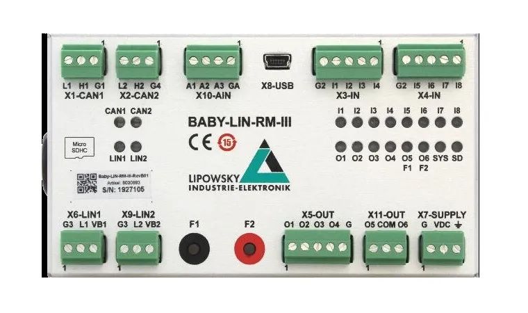 虹科Baby-LIN-RM-III:多种总线(LIN/CAN/CAN FD)仿真测试工具。Baby-LIN-RM-III是一个专业的LIN总线工具,可同时仿真一个LIN主节点和多个从节点,带有按键和数字IO,可和PLC配合使用,实现自动化测试。