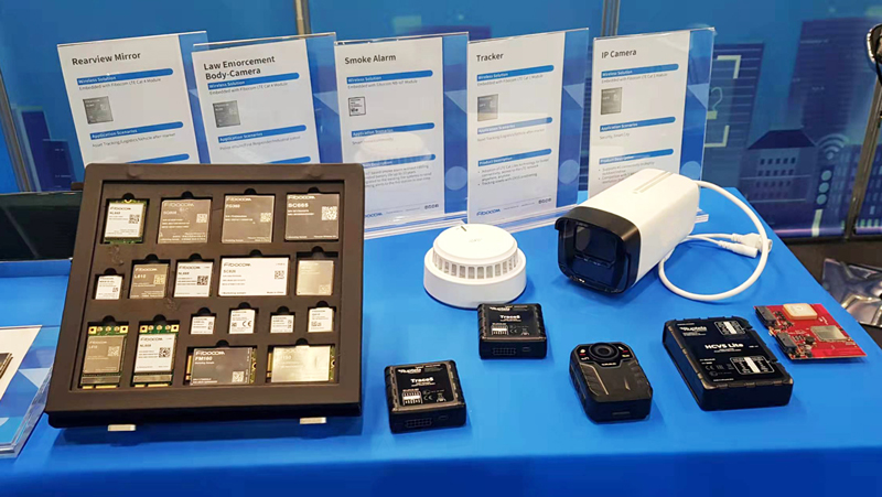 在智慧安防板块,广和通展示了安防监控摄像头、执法摄像头、烟感报警器以及车载后视镜。安防监控摄像头内置了广和通Cat1智能模组模组SQ808L610,为实现回传高质量视频图像提供稳定4G连接。内置了广和通Cat4模组NL668的执法摄像头能帮助执法人员快速记录嫌疑人踪迹,并通过4G网络进行云端同步。烟感报警器则是搭载了NB-IoT模组N510,该款模组具有功耗低、感知准、传播距离远、生命周期长等优势。车载后视镜则是内置了Cat4模组NL668,帮助智能后视镜通过4G网络进行行车记录,支持IVI应用。