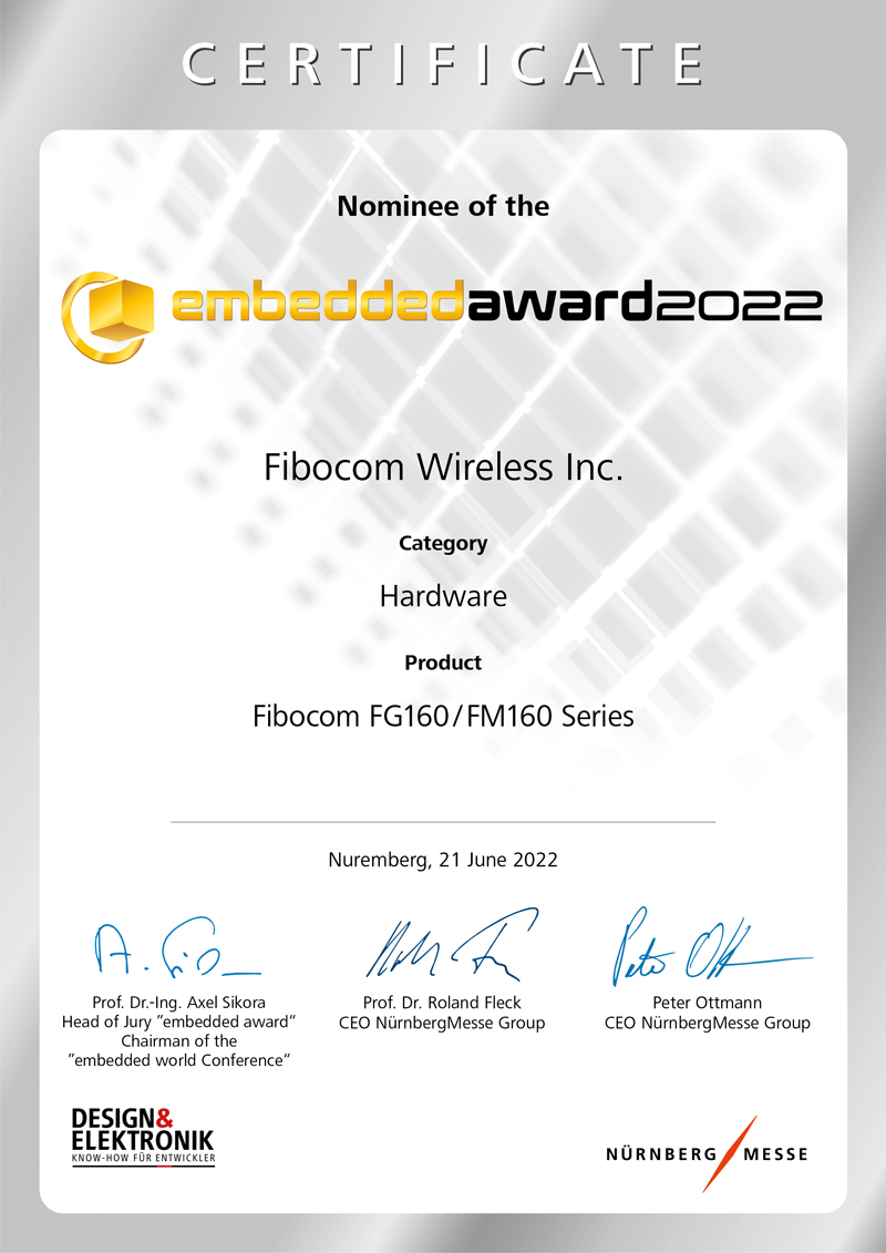 广和通3GPP R16 5G模组FM160/FG160经过多轮评审,在百家企业的激烈竞争中突出重围,入围嵌入式硬件解决方案Top3提名。