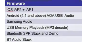 软件解决方案同时包括多协议堆栈和一个可以在源代码中修改的应用层。 堆栈处理规范通信,能与各种各样附加应用元件进行互动,包括音频解码器、数字过滤、发送侧速率转换和控制特性。 有多个解码器可用于支持蓝牙 A2DP 音频流的音频,包括 SBC、AAC 和 MP3。 利用这种模块化解决方案,设备制造商可按照特性、控制和存储器成本区分各种潜在的解决方案。
