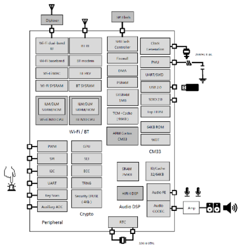 MediaTek全新无线连网系统单芯片Filogic 130A(MT7933)整合了微控制器、AI引擎、Wi-Fi 6和蓝牙5.2及电源管理单元(PMU)、独立音频数字信号处理器(DSP)等单元。其中,音频数字信号处理器(DSP)能够使设备制造商轻松地在其产品中添加语音助手和其他服务。凭借先进的功能与高集成度,本方案可为小尺寸装置提供节能、可靠及高效的网络连接,是各类物联网(IoT)装置的极佳选择。