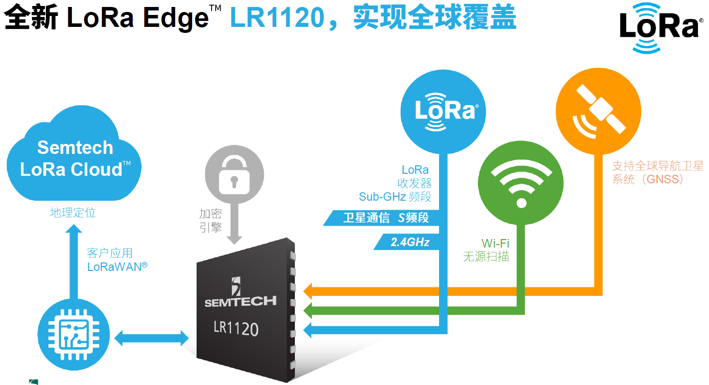 LR1120是LoRa Edge地理定位平台的一部分,支持全球部署。据Semtech中国区LoRa市场战略总监甘泉介绍,LR1120的核心优势有:首先,最大的特点是可以支持地面和卫星通信网络;其次,它具有LoRa技术超低功耗的特点,拥有长达数年的电池寿命,而且与传统的定位技术不同,LR1120的定位是在云端进行解析的;三是LR1120同样具有覆盖距离更远、带宽更大、非常适合物联网应用等优势。