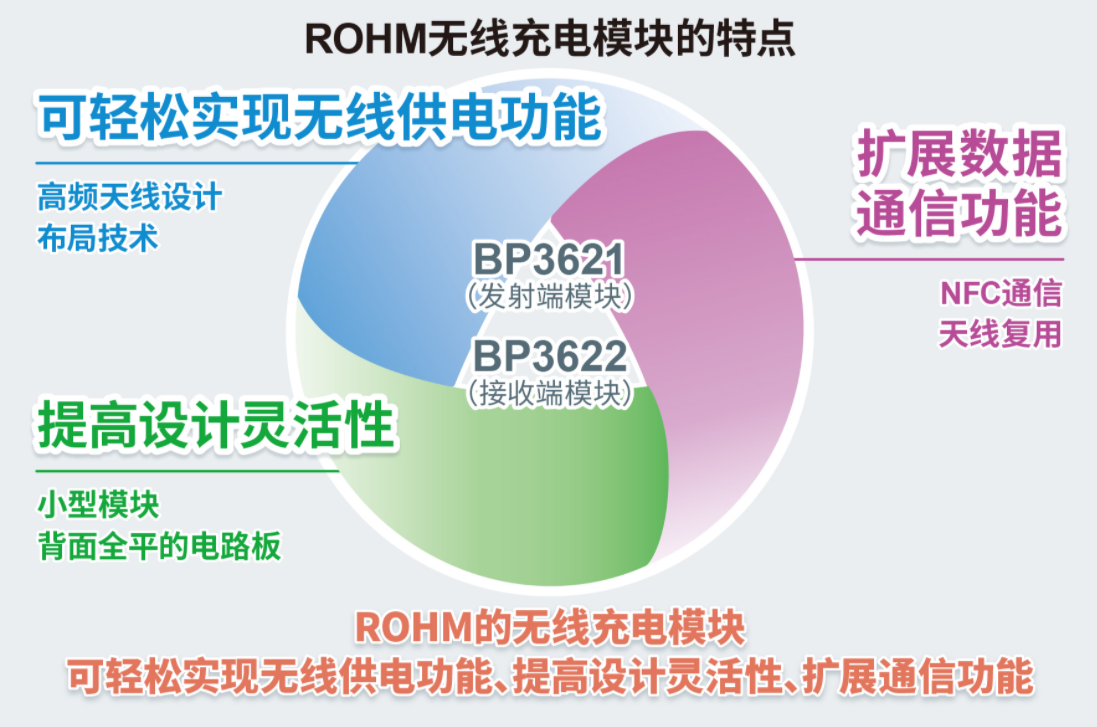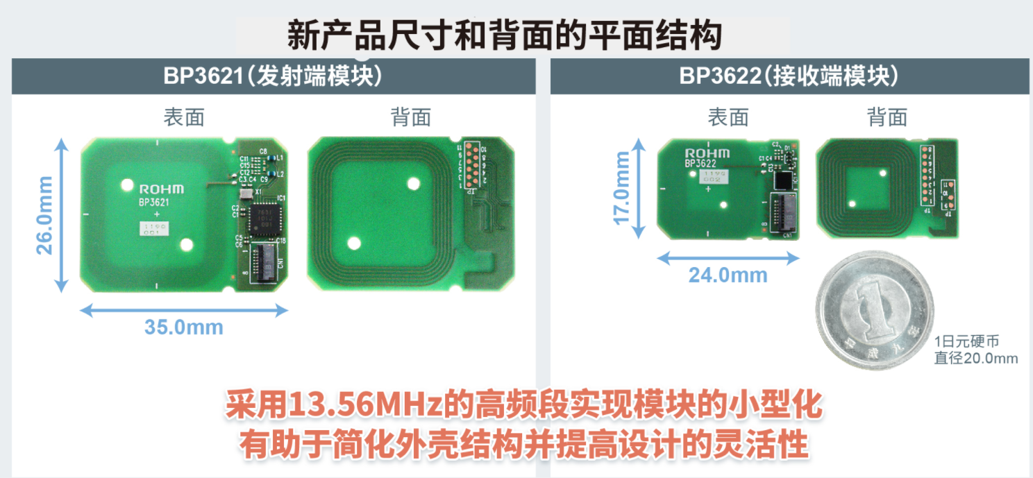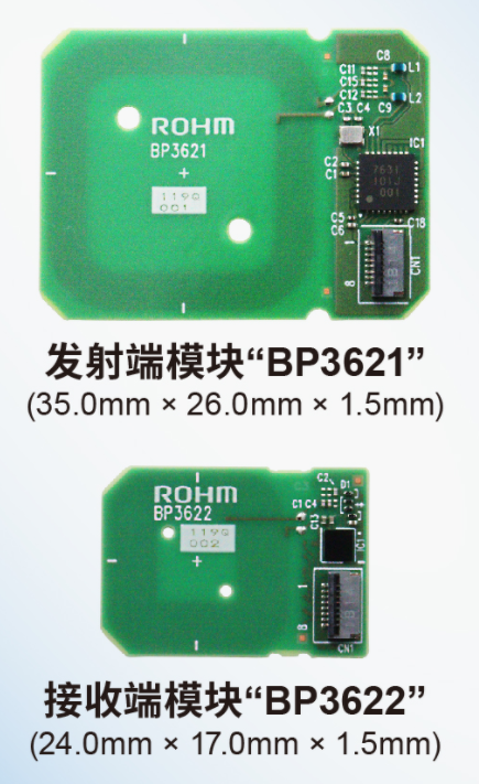 全球知名半导体制造商ROHM(总部位于日本京都市)开发出一组天线和电路板一体化的小型无线充电模块“BP3621(发射端模块)”和“BP3622(接收端模块)”,利用这组模块可轻松实现智能标签和智能卡等小型设备和电脑外设的无线充电功能。