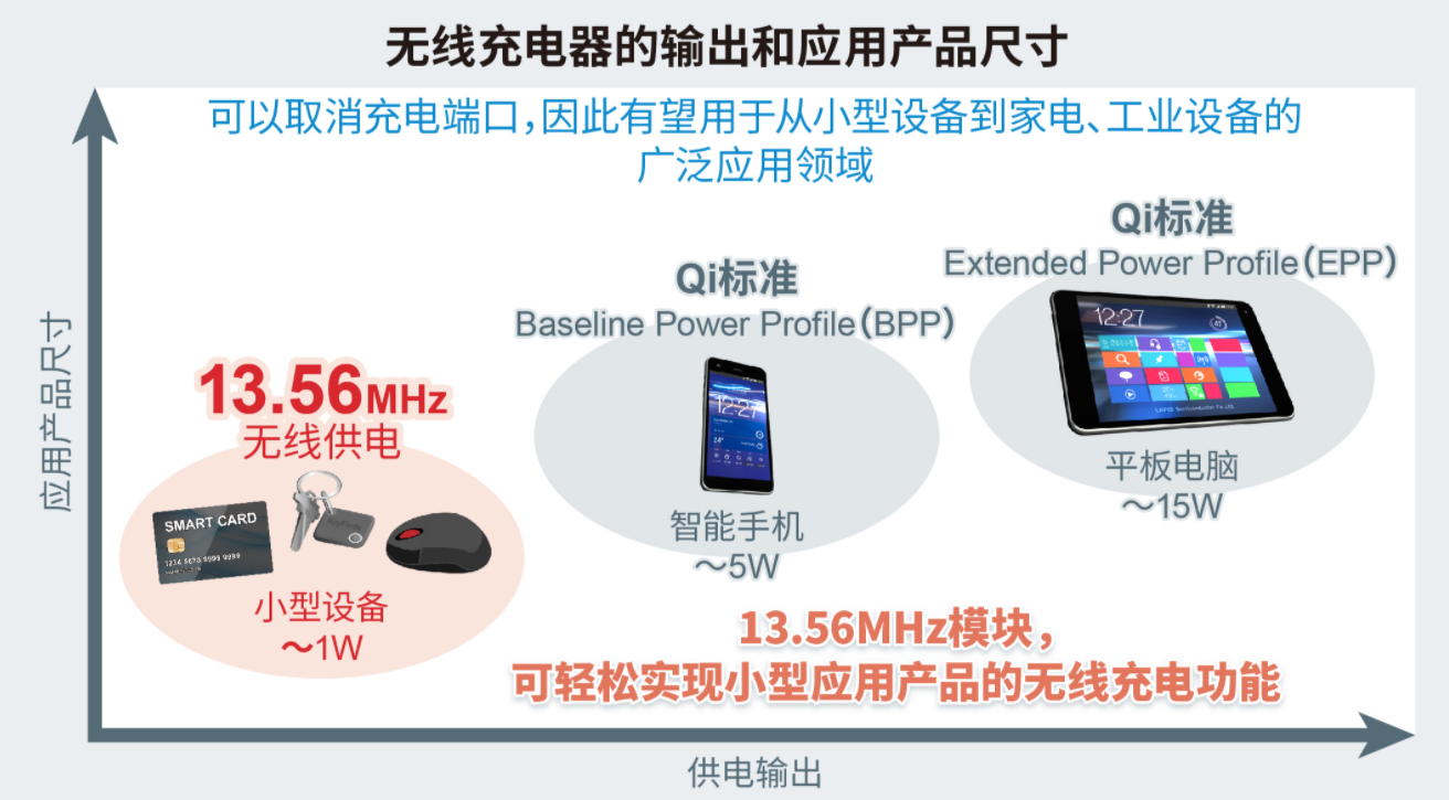 近年来,在智能手机和智能手表等众多的应用领域,可以取消充电端口并提高防水和防尘性能的无线供电功能正在被加速采用。然而,现有无线供电标准的频率较低,而且为了符合标准而限制了天线的小型化,因此,业内对于更好地通用于小型设备的标准和方式的期望值越来越高。另外,由于无线供电功能的供电效率会因天线形状、尺寸及距离等而发生变化,因此需要在电子设备整机上反复进行试制、调整、评估等工作之后才能安装无线供电功能,对于天线设计和布局设计来说,开发负担繁重一直是很大的问题。在这种背景下,ROHM开发出13.56MHz无线充电模块,可以使小而薄的设备轻松实现无线供电功能。