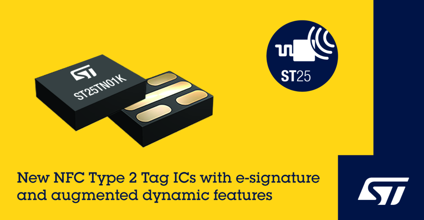 2021 年 11 月 23 日,中国——意法半导体的 ST25TN512 和 ST25TN01K NFC Forum Type 2标签 IC 为商家消费者互动、产品信息分享、品牌保护等应用带来更高的性价比。