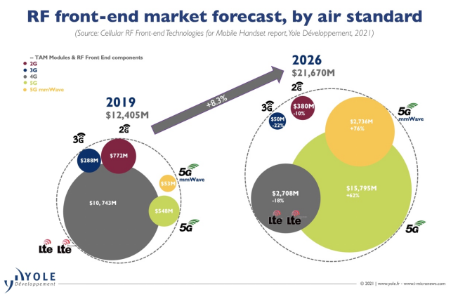 图3:Yole对于射频前端市场规模的预测