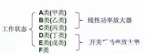 传统线性功率放大器的工作频率很高,但相对频带较窄,射频功率放大器一般都采用选频网络作为负载回路。射频功率放大器可以按照电流导通角的不同,分为甲(A)、乙(B)、丙(C)三类工作状态。甲类放大器电流的导通角为360°,适用于小信号低功率放大,乙类放大器电流的导通角等于180°,丙类放大器电流的导通角则小于180°。乙类和丙类都适用于大功率工作状态,丙类工作状态的输出功率和效率是三种工作状态中最高的。射频功率放大器大多工作于丙类,但丙类放大器的电流波形失真太大,只能用于采用调谐回路作为负载谐振功率放大。由于调谐回路具有滤波能力,回路电流与电压仍然接近于正弦波形,失真很小。